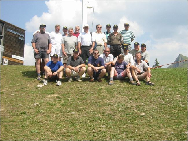 Auf dem Sonnenkopf Oben von Links: Bruno Surer, Bobby, Paul Fiechter, Hansjörg Mangold, Heiz Buess, Hans Habegger, Gudio Schmutz, Alex Forney, Toni Beugger, Reto Gyhr. ... unten von Links: Rolf Riser, Peter Schmidt, Philipp Schmidt, Ruedi Mangold, Andi Fiechter, Peter Fiechter, Georg Riser, Andy Schürch, Hanspeter Surer. |